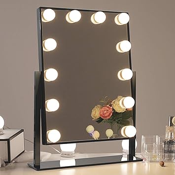 Chende Glossy Black Lighted Vanity Mirror With Dimmable Led Bulbs Hollywood Style Makeup Mirror With Lights For Touch Control Design 3 Different
